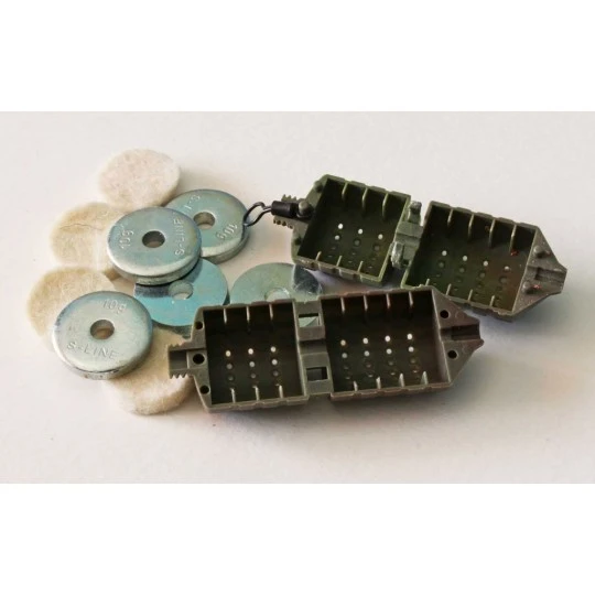 en viltschijven (gebruikt om attractorvloeistof op te nemen) en wordt met de wartel in de bovenste